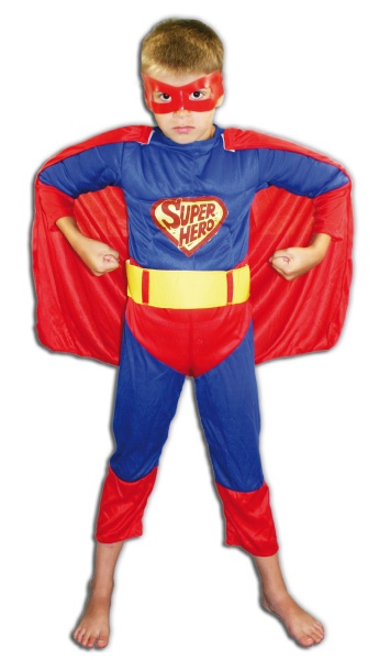 Kostým superhrdiny obsahuje overal, pásek, pláštěnku a škrabošku na obličej. Každý chlapeček v něm bude na karnevalech zářit jako jeho oblíbený filmový či komiksový hrdina.